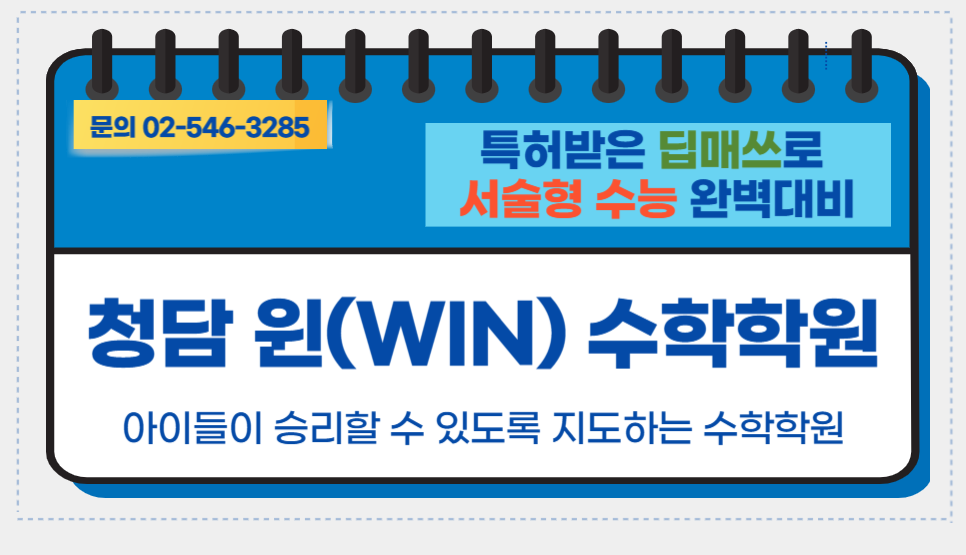 우리 학원은 최근 정숙자 수학학원에서 이름을 청담 윈 win 수학 학원으로 개명을 했는데요!!